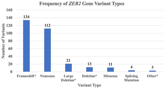 2.3. ZEB2 Gene Variant Types and Frequencies