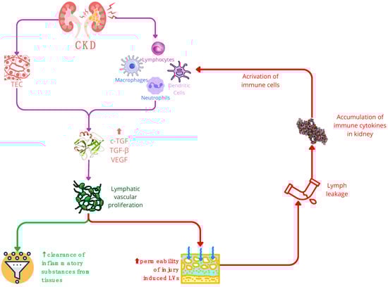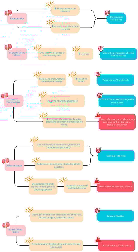 - Liu, J.; Yu, C. Lymphangiogenesis and Lymphatic Barrier Dysfunction in Renal Fibrosis. Int. J. Mol. Sci. 2022, 23, 6970. [Google Scholar] [CrossRef]