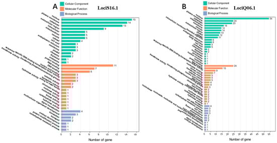 GO term enrichment analysis of the genes located within the two QTL clusters: (A) LociS16.1; (B) LociQ06.1.