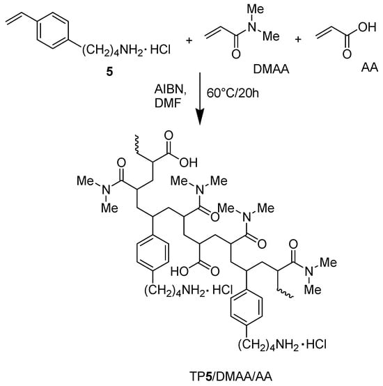 TP5/DMAA/AA was obtained starting from a molar ratio of monomers in the feed of 5/DMAA/AA = 1/8/1 (Scheme 5).