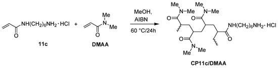 2.3. Preparation of Copolymers of 11a–c with DMAA (CP11a–c/DMAA)