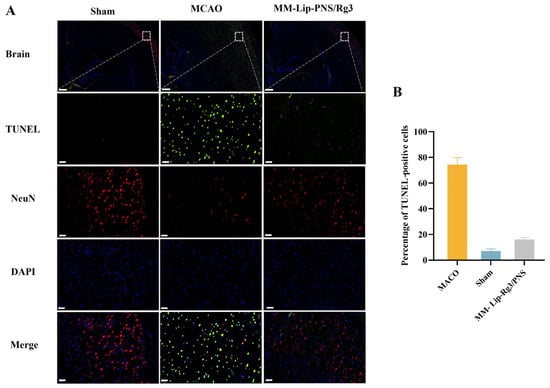 2.9. MM-Lip-Rg3/PNSs Reduced Neuronal Apoptosis Caused by Ischemia