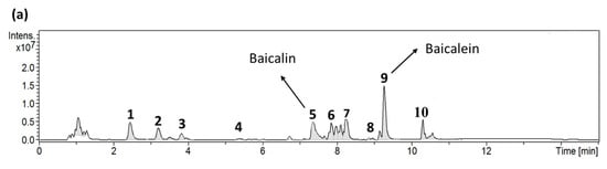 - Zhao, T.; Tang, H.; Xie, L.; Zheng, Y.; Ma, Z.; Sun, Q.; Li, X. Scutellaria baicalensis Georgi. (Lamiaceae): A review of its traditional uses, botany, phytochemistry, pharmacology and toxicology. J. Pharm. Pharmacol. 2019, 71, 1353–1369. [Google Scholar] [CrossRef]
