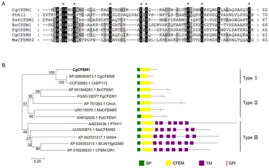 2.1. CgCFEM1 Contained a Signal Peptide and a Conserved CFEM Domain
