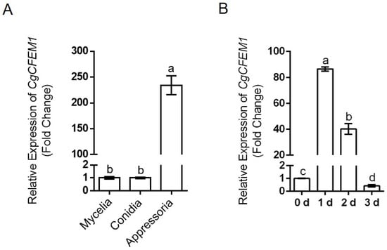 2.2. High-Level Expression of CgCFEM1 in Appressorium and Early Infection Stage