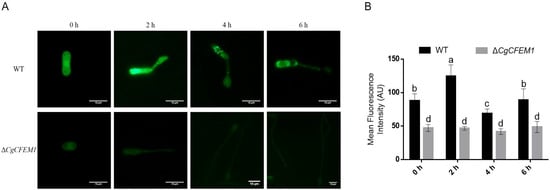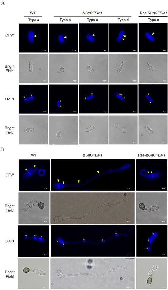 2.5. CgCFEM1 Was Involved in the Regulation of Cell Cycle Progression in Conidia and Germ Tube