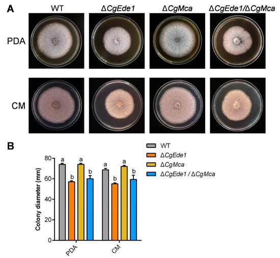 2.2. CgEde1 Is Involved in Vegetative Growth, Conidiation, and Pathogenicity