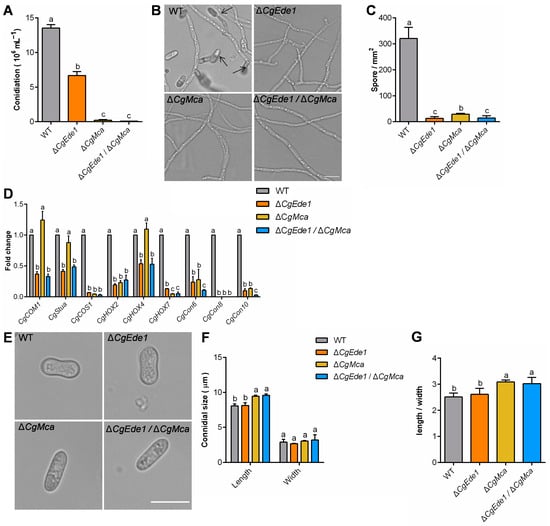 2.4. CgMca Is Required for Conidiation, Spore Morphology and Germination