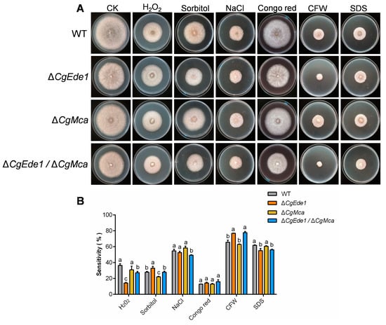 2.7. CgEde1 and CgMca Are Involved in Stress Tolerance