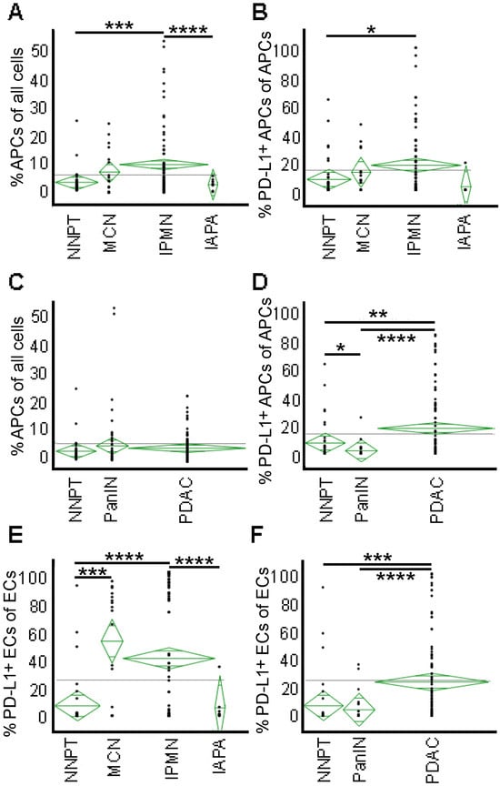 2.4. APCs Are Abundant in IPMN but Not in PanIN or Cancer—High PD-L1 Expression on APCs and Epithelial Cells of PDAC
