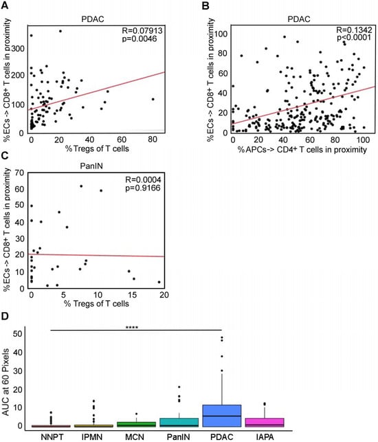 2.7. Negative Impact of Tregs on the Engagement of CD8+ T Cells with ECs in PDAC but Not in Precursor Lesions—High Degree of Cellular Mixing in the IME of PDAC Indicative of a Non-Functional Immune Environment