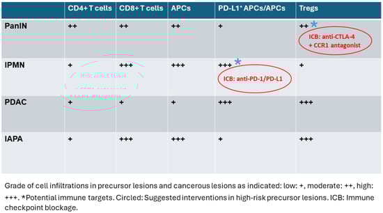 - Roth, S.; Zamzow, K.; Gaida, M.M.; Heikenwalder, M.; Tjaden, C.; Hinz, U.; Bose, P.; Michalski, C.W.; Hackert, T. Evolution of the immune landscape during progression of pancreatic intraductal papillary mucinous neoplasms to invasive cancer. eBioMedicine 2020, 54, 102714. [Google Scholar] [CrossRef]