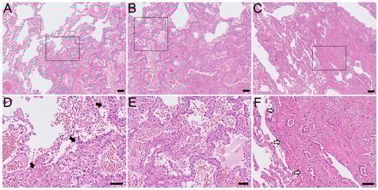 Histomorphological pictures of early pulmonary adenocarcinomas. (A) Adenocarcinoma in situ. (B) Pure lepidic growth pattern of adenocarcinoma in situ without sign of stromal invasion. (C) Minimally invasive adenocarcinoma. (D) Inset (black dotted frame) of (A): note lepidic growth pattern (right) toward uninvolved pulmonary parenchyma (left) as pointed to by black arrow heads. (E) Inset of (B). (F) Inset of (C): invaded atypical cells that form acinar structures are seen in invasion front as pointed to by white arrow heads. Hematoxylin and Eosin stain. Scale bars represent 100 µm in (A–C) and 50 µm in (D–F).