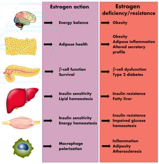 - Mauvais-Jarvis, F.; Clegg, D.J.; Hevener, A.L. The role of estrogens in control of energy balance and glucose homeostasis. Endocr. Rev. 2013, 34, 309–338. [Google Scholar] [CrossRef]