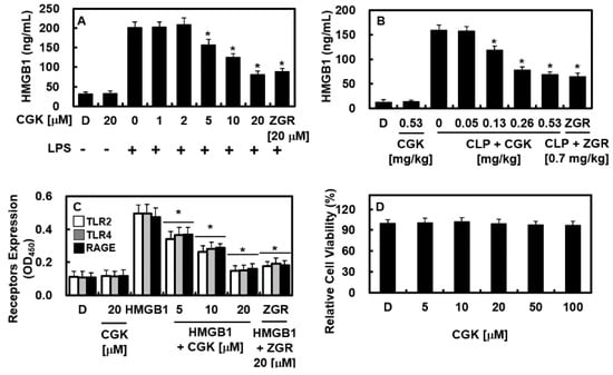 - Kim, J.E.; Lee, W.; Yang, S.; Cho, S.H.; Baek, M.C.; Song, G.Y.; Bae, J.S. Suppressive effects of rare ginsenosides, Rk1 and Rg5, on HMGB1-mediated septic responses. Food Chem. Toxicol. 2019, 124, 45–53. [Google Scholar] [CrossRef]