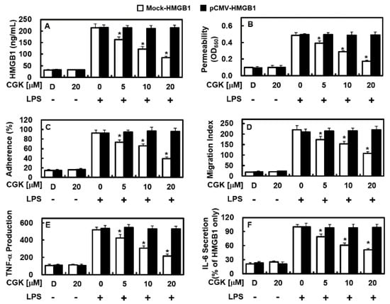 2.6. Overexpression of HMGB1 Prevents the Anti-Inflammatory Functions of CGK012