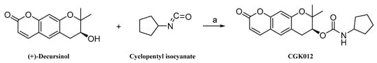 4.2. Method for the Synthesis of (7S)-(+)-Cyclopentyl Carbamic Acid 8,8-Dimethyl-2-oxo-6,7-dihydro-2H,8H-pyrano[3,2-g]chromen-7-yl-ester (CGK012)