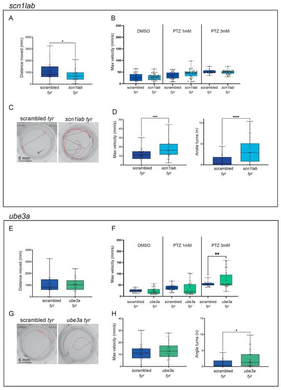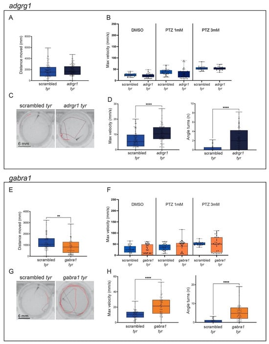 2.2. adgrg1, gabra1, pcdh19, scn1lab and ube3a Crispants Show Epilepsy-like Behavior