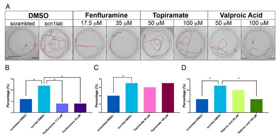 - Baraban, S.C.; Dinday, M.T.; Hortopan, G.A. Drug Screening in Scn1a Zebrafish Mutant Identifies Clemizole as a Potential Dravet Syndrome Treatment. Nat. Commun. 2013, 4, 2410. [Google Scholar] [CrossRef]