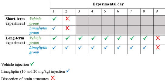 - Łupina, M.; Talarek, S.; Kotlińska, J.; Gibuła-Tarłowska, E.; Listos, P.; Listos, J. The role of linagliptin; a selective dipeptidyl peptidase-4 inhibitor; in the morphine rewarding effects in rats. Neurochem. Int. 2020, 133, 104616. [Google Scholar] [CrossRef]