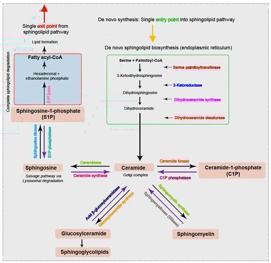 - Hannun, Y.A.; Obeid, L.M. Sphingolipids and Their Metabolism in Physiology and Disease. Nat. Rev. Mol. Cell Biol. 2018, 19, 175–191. [Google Scholar] [CrossRef]