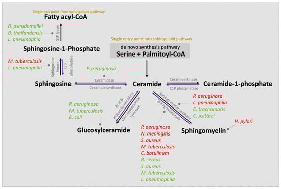 - Rolando, M.; Buchrieser, C. A Comprehensive Review on the Manipulation of the Sphingolipid Pathway by Pathogenic Bacteria. Front. Cell Dev. Biol. 2019, 7, 168. [Google Scholar] [CrossRef]