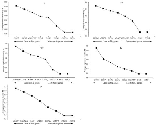 geNorm analysis of candidate reference genes’ expression stability. Stability increases progressively from left to right.