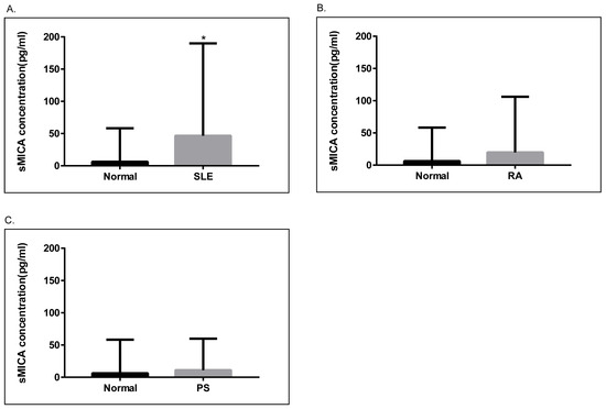 2.4. Soluble MICA (sMICA) Levels Were Significantly Increased in Serum Samples of SLE Patients