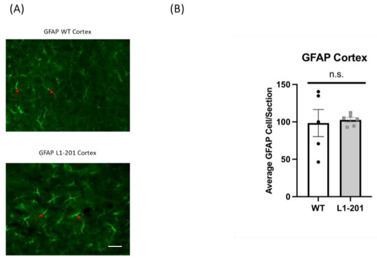 2.4. There Are no Significant Differences in GFAP between the Injured L1-201 and Injured WT Mice in either the Cortex or Hippocampus at 21 DPI