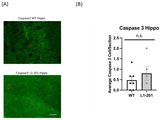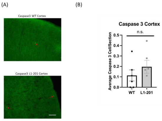2.5. There Are no Significant Differences in Caspase between the Injured L1-201 and Injured WT Mice in either the Cortex or Hippocampus at 21 DPI