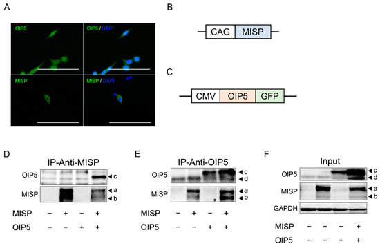 2.7. MISP Influences OIP5 Expression through Complex Formation, While OIP5 Does Not Alter MISP Expression