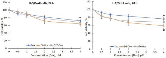 | IC50, μM by Chemotherapeutic Agent | LLC Cells | LLC/DoxR Cells | ||