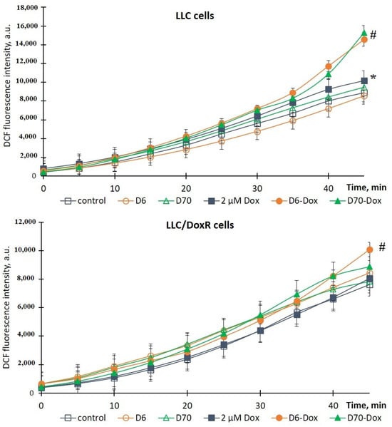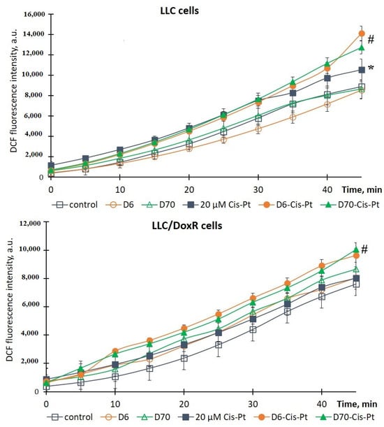 2.3. ROS Production in LLC Cells under the Influence of Water-Soluble D-g-PNIPAM Polymers in Combination with Chemotherapeutic Agents