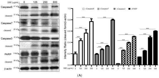 2.2. SBE Activated the Key Molecules of the Apoptotic Pathway in the SK-Hep-1 Cell