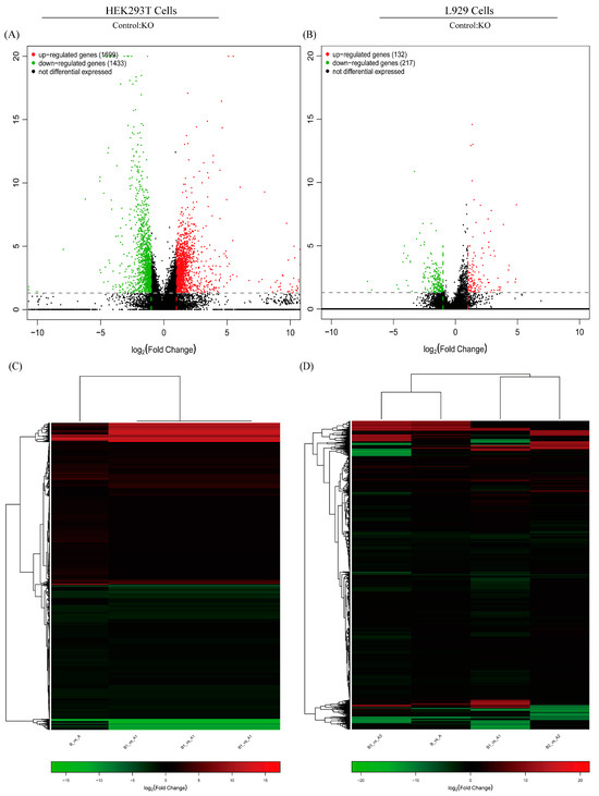 Summary of differentially expressed genes (downregulated) in HEK293T and L929 cells determined using RNA-Seq analysis.