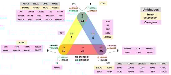 - Barreiro-Alonso, A.; Camara-Quilez, M.; Salamini-Montemurri, M.; Lamas-Maceiras, M.; Vizoso-Vazquez, A.; Rodriguez-Belmonte, E.; Quindos-Varela, M.; Martinez-Iglesias, O.; Figueroa, A.; Cerdan, M. Characterization of HMGB1/2 Interactome in Prostate Cancer by Yeast Two Hybrid Approach: Potential Pathobiological Implications. Cancers 2019, 11, 1729. [Google Scholar] [CrossRef]