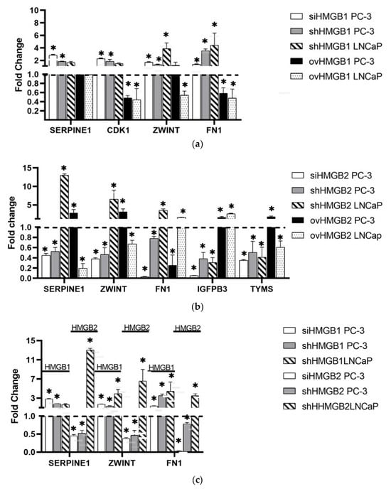 2.1. Transcription of Genes Related to PCa after HMGB1 or HMGB2 Silencing in PC-3
