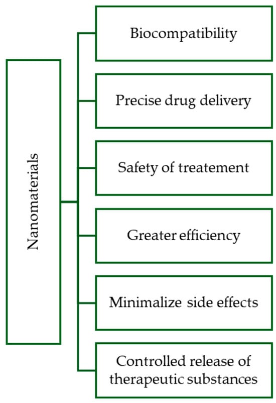 Due to their unique physicochemical properties, nanomaterials represent a promising field in drug delivery. Compared to macro-molecules or other nanostructures, nanomaterials exhibit specific characteristics, such as a large surface area, surface modification capability, and the ability to control size and shape. These properties contribute to increased drug transport and release efficiency, making them attractive candidates as carriers in drug delivery therapies [10].