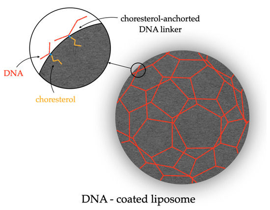 - Zhang, Z.; Feng, Z.; Zhao, X.; Jean, D.; Yu, Z.; Chapman, E.R. Functionalization and higher-order organization of liposomes with DNA nanostructures. Nat. Commun. 2023, 14, 5256. [Google Scholar] [CrossRef] [PubMed]