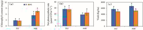 2.1. Yield, Photosynthetic Rate, and Chlorophyll Content of the Two Varieties under Heat Stress