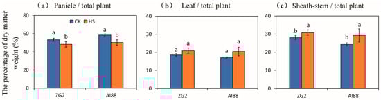 2.2. Accumulation and Allocation of Dry Matter Weight under Heat Stress