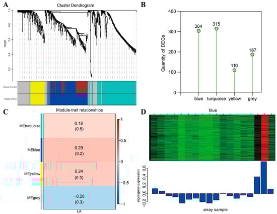 2.8. Identification of Potential Hub Genes Involved in Regulation of LA via Weighted Gene Co-Expression Network Analysis (WGCNA)