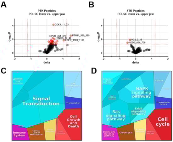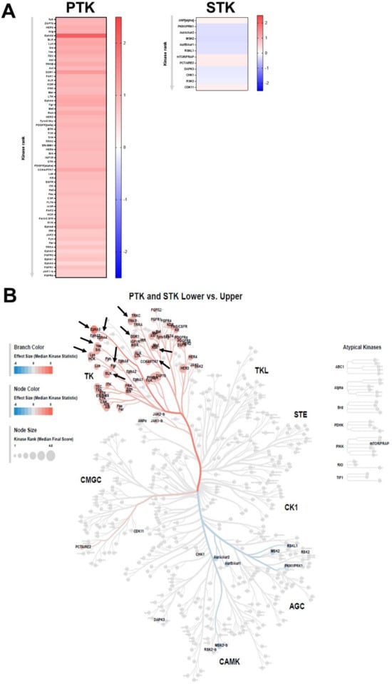 2.2. Phosphorylation of PTK in the Upper Jaw Was Promoted More Widely and Specifically than That of STK-Peptides