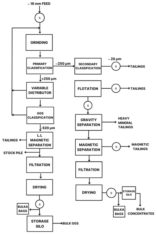 In 1989, an investigation was carried out with a theoretical approach to extracting tantalum and lithium. In the case of lithium, the research comments that it is extracted from spodumene, a pyroxene mineral, although it also comments on its obtention from other minerals, i.e., petalite, lepidolite, and amblygonite. It proposes a process flow diagram, shown in Figure 1, which includes crushing, grinding, classification, flotation, gravity separation, magnetic separation, filtration, and drying. A concentrate containing 7.6% Li2O was obtained ready to be stored [].