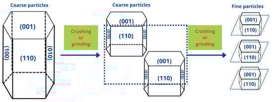 Schematic of the change in the crystalline planes of spodumene as particle size decreases [].