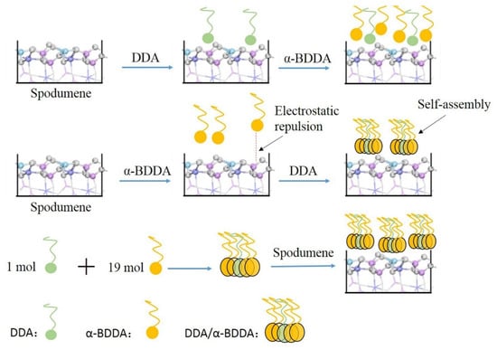Adsorption mechanism model of α-BDDA and DDA on the spodumene surface [].