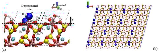 - Quezada, G.; Toledo, P. Structure of the Interface between Lithium-Rich Spodumene and Saltwater by Density Functional Theory Calculations and Molecular Dynamics Simulations. J. Phys. Chem. C 2020, 124, 1446–1457. [Google Scholar] [CrossRef]