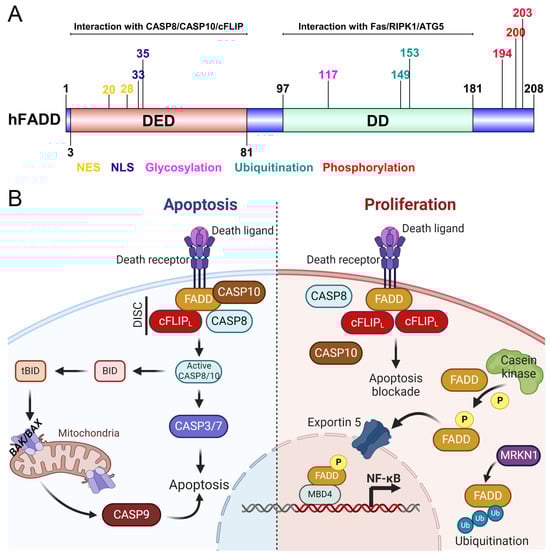 2.2. Localization, Phosphorylation, and Expression of FADD Governs Its Function and Cellular Fate