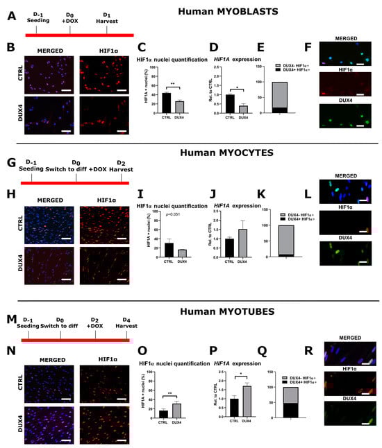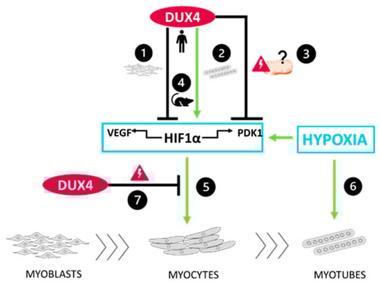 - Nguyen, T.-H.; Paprzycki, L.; Legrand, A.; Declèves, A.-E.; Heher, P.; Limpens, M.; Belayew, A.; Banerji, C.R.S.; Zammit, P.S.; Tassin, A. Hypoxia Enhances Human Myoblast Differentiation: Involvement of HIF1α and Impact of DUX4, the FSHD Causal Gene. Skelet. Muscle 2023, 13, 21. [Google Scholar] [CrossRef]