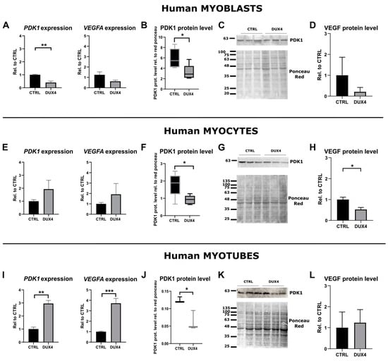 3.1. DUX4-Induced HIF1α Pathway Disturbances Depend on the Differentiation State of Human Muscle Cells